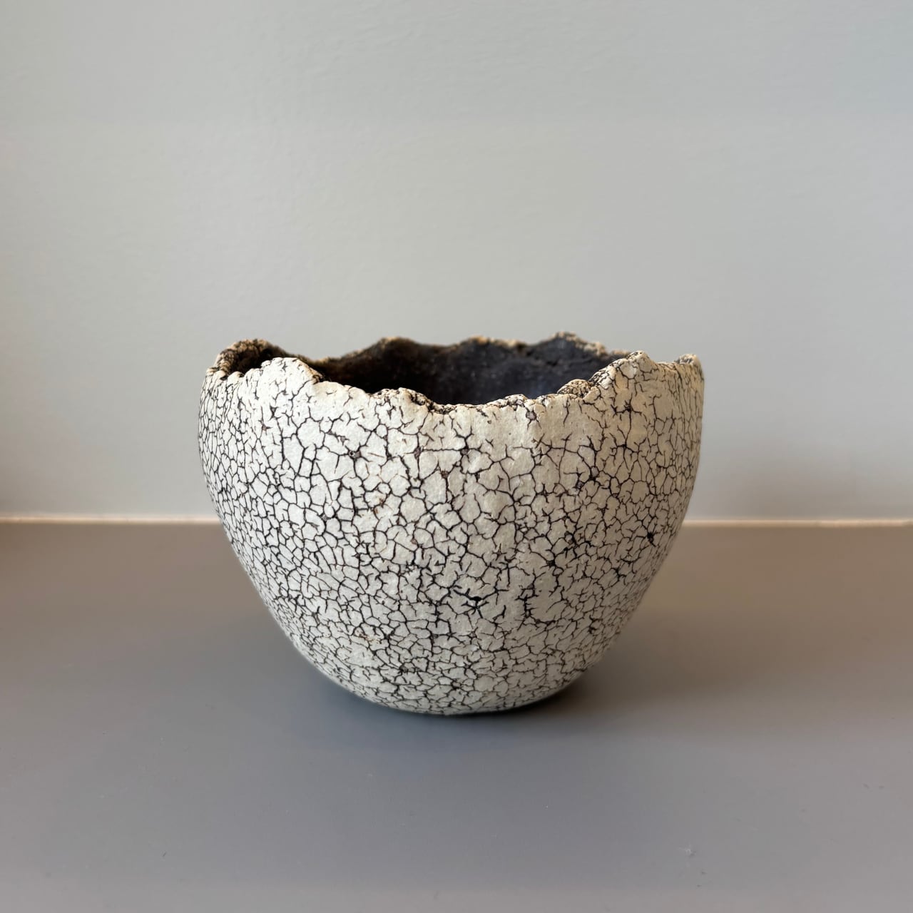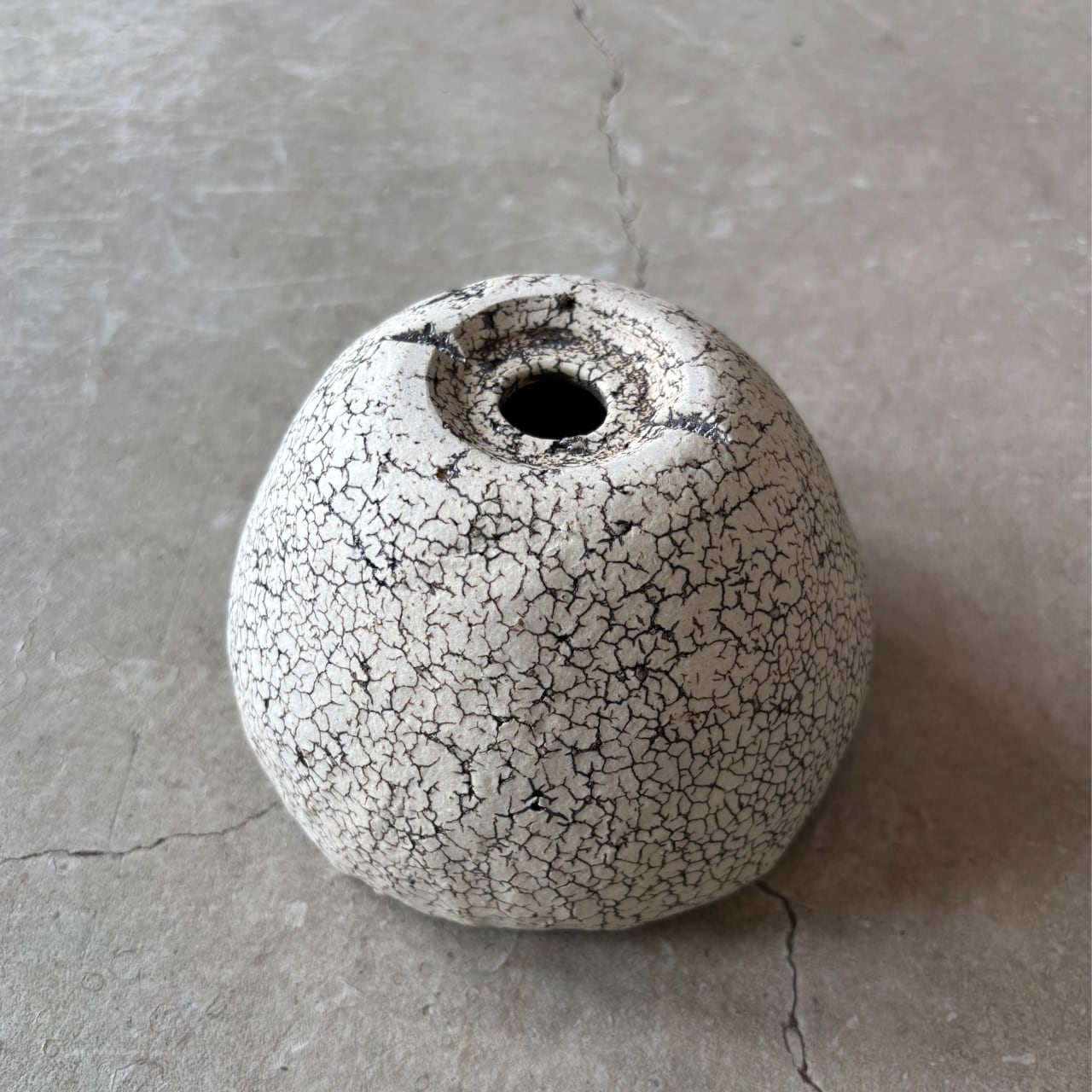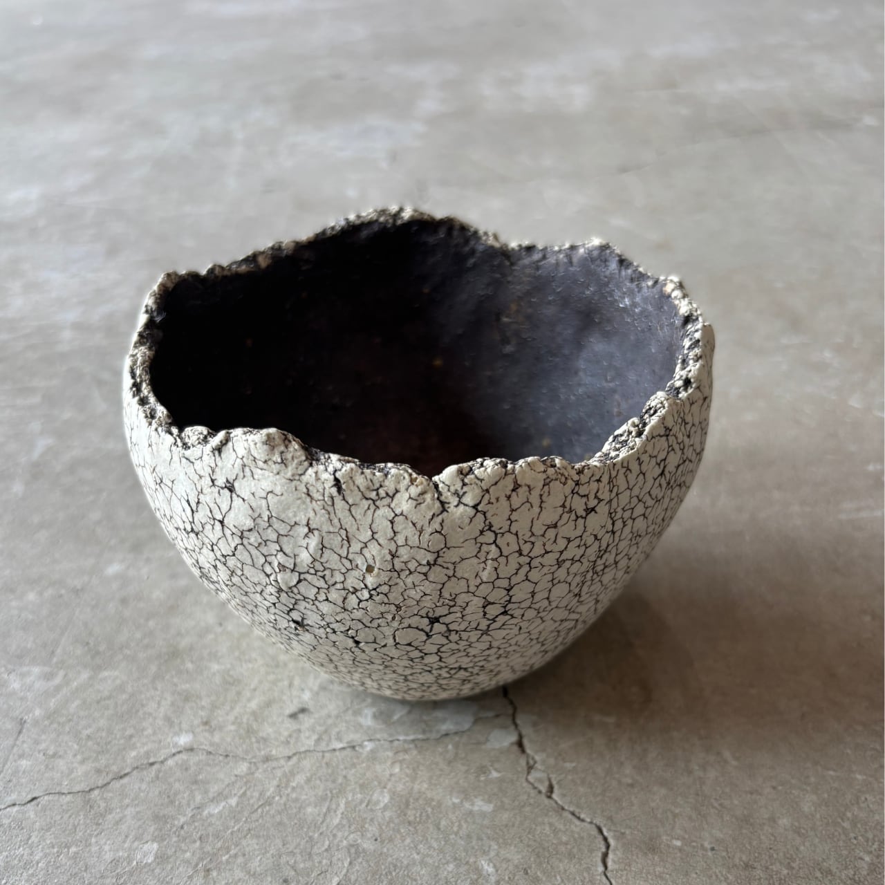 陶芸家の中根楽の作品である「罅のBow Pot (植物鉢)」。