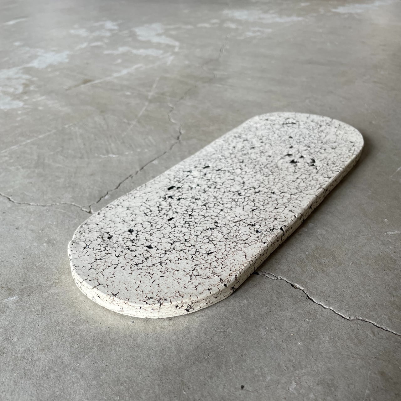 陶芸家の中根楽の作品である「 罅の楕円板皿 」。